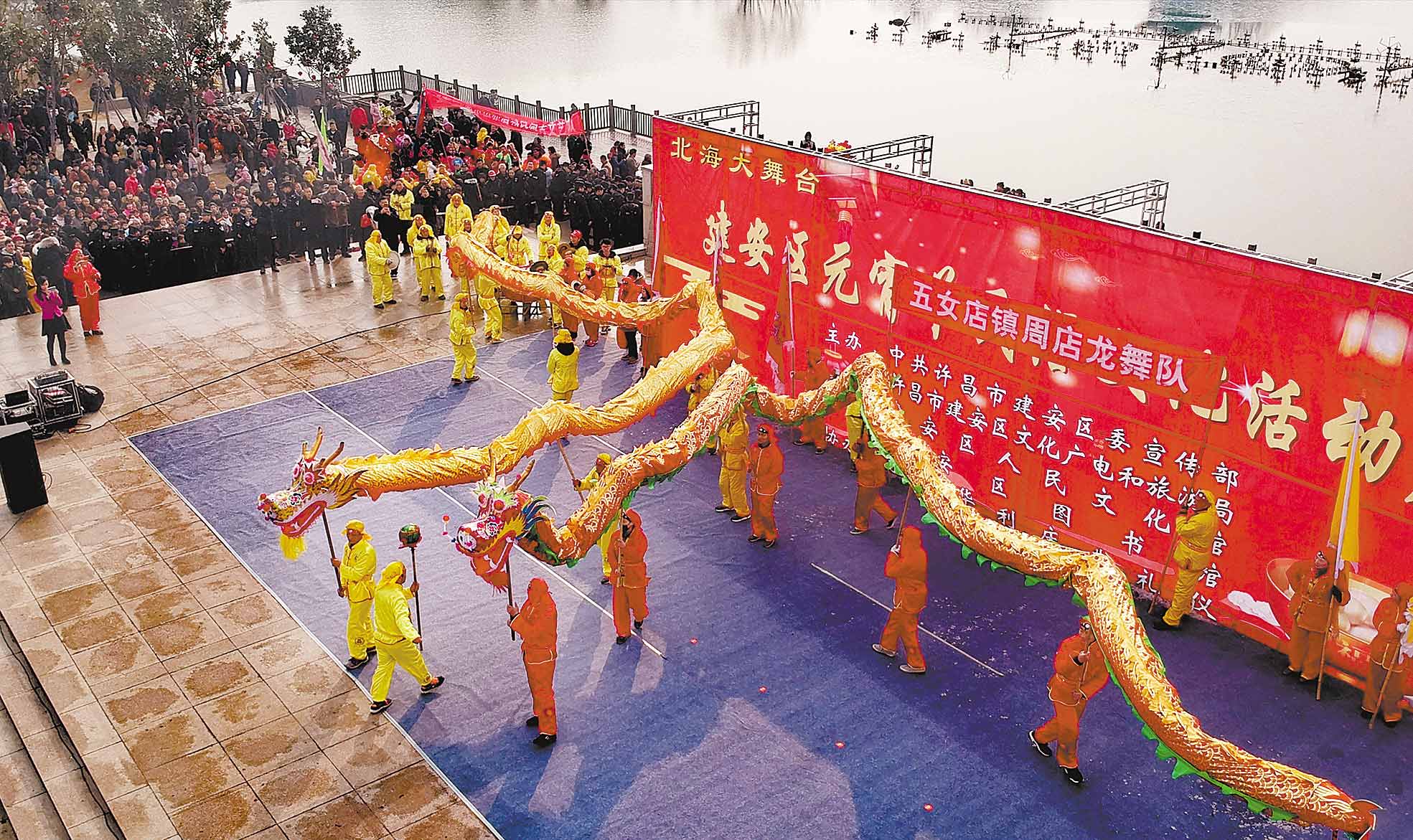 2月19日上午,建安區(qū)元宵節(jié)民俗文化展演在北海公園隆重舉行。當日,北海公園人山人海,舞獅子、踩高蹺、劃旱船等民俗節(jié)目豐富多彩,節(jié)日氣氛濃厚。