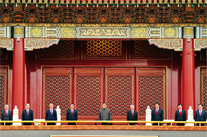 2021年7月1日,慶祝中國共產(chǎn)黨成立100周年大會在北京天安門廣場隆重舉行。習近平、李克強、栗戰(zhàn)書、汪洋、王滬寧、趙樂際、韓正、王岐山、胡錦濤等出席大會。 新華社記者 殷博古/攝