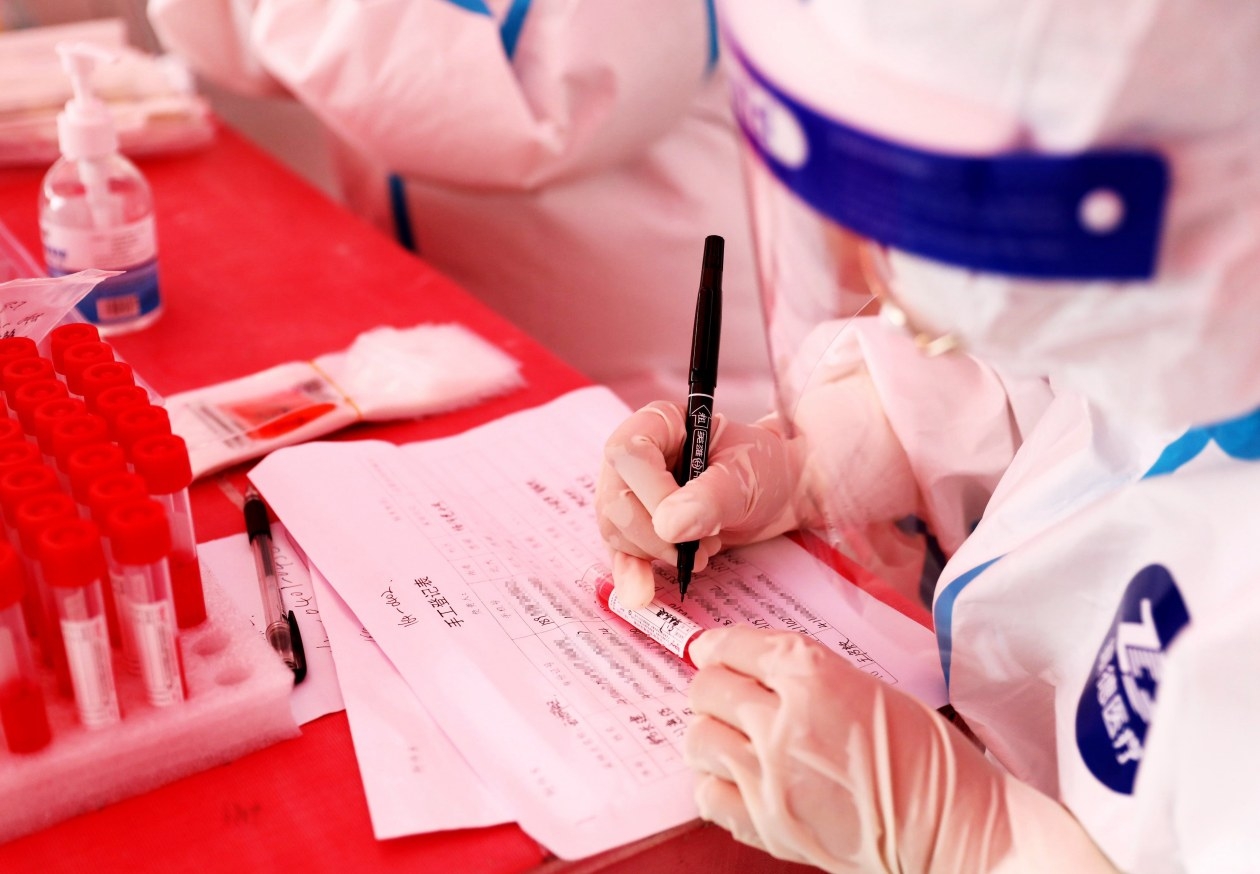 8月7日,醫(yī)務(wù)人員對(duì)核酸檢測(cè)采樣認(rèn)真登記。