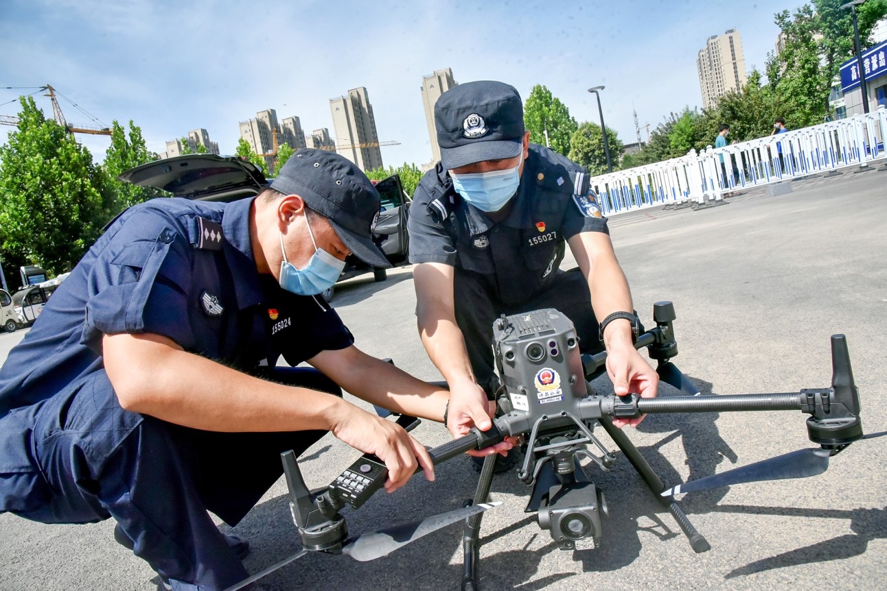 8月25日,許昌市公安局魏都分局民警在許昌市中心醫(yī)院新院區(qū)附近開展反詐宣傳活動。與以往開展的此類活動相比,該分局民警在發(fā)放反詐主題宣傳彩頁的同時,還使用無人機飛行播放反詐音頻,努力讓群眾對防騙反詐知識有更直觀、更深刻的了解。圖為該分局民警在調(diào)試無人機,準(zhǔn)備“空對地”宣傳。 曹秀軍 攝