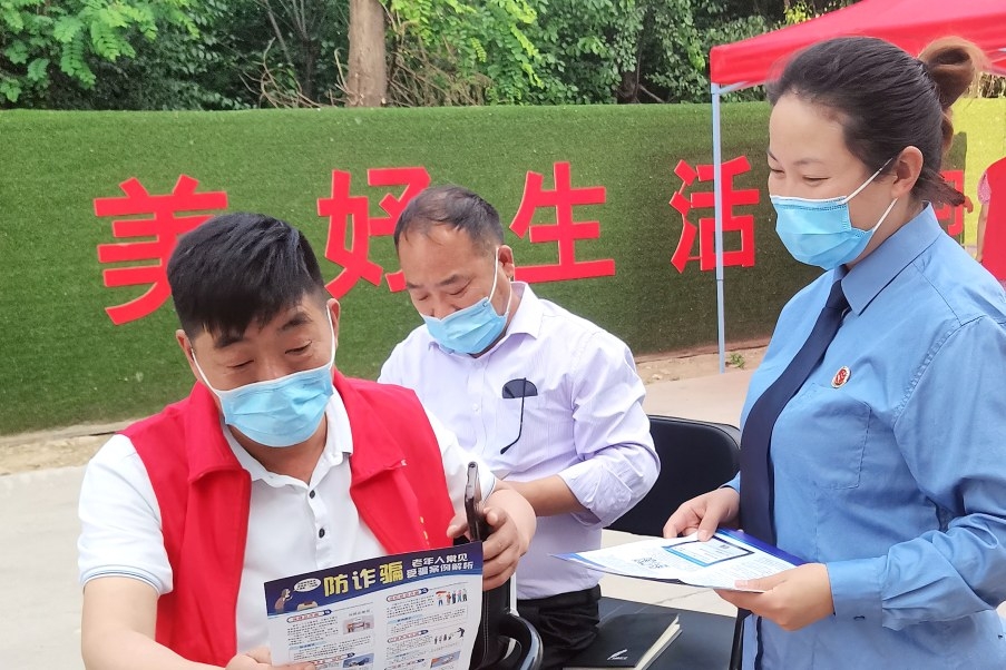 6月6日,鄢陵縣人民檢察院干警走上街頭,開展打擊整治養(yǎng)老詐騙普法宣傳活動(dòng)。他們采取發(fā)放宣傳頁、講解典型案例等形式,提高群眾的識騙、防騙能力。解童 攝