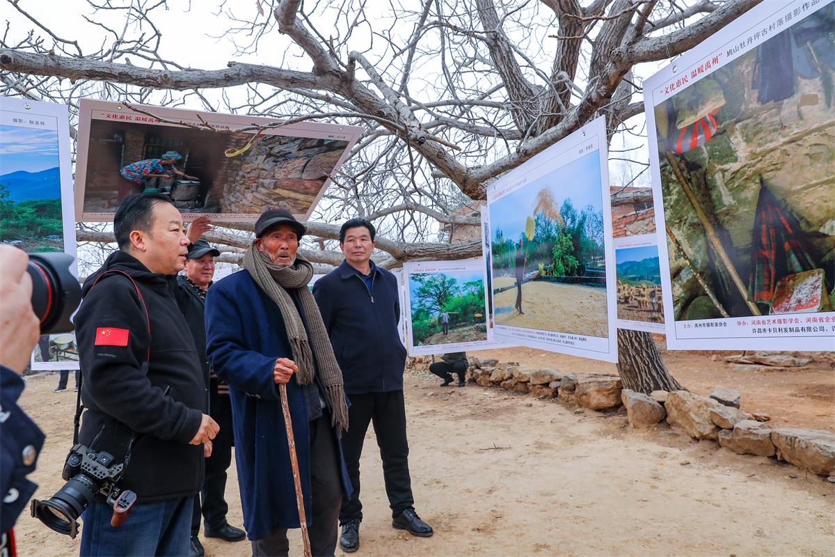 今年春節(jié),為了給村民們送上一份特殊的禮物,禹州市攝影家協(xié)會(huì)從十余年拍攝的幾萬(wàn)張作品中,百里挑一、優(yōu)中選優(yōu),精心挑選出200幅照片,打造村頭攝影展,展示牡丹坪古村落發(fā)展變化、農(nóng)耕方式的傳承、精準(zhǔn)扶貧成果等,并邀請(qǐng)村民到現(xiàn)場(chǎng)剪彩,熱鬧非凡。