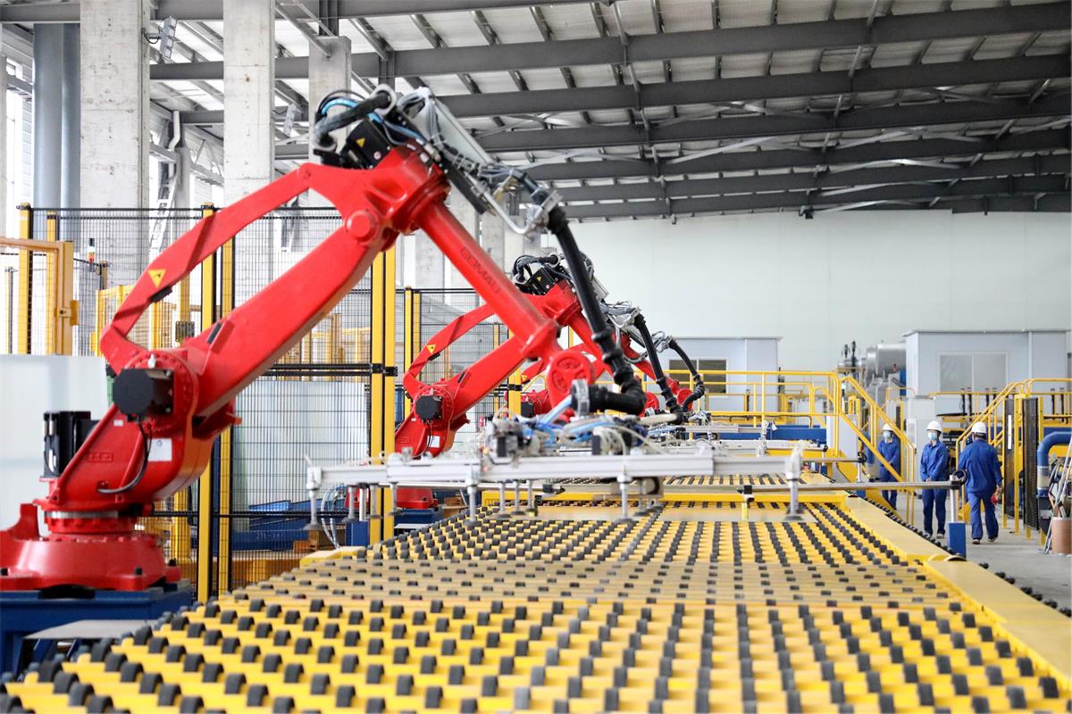 4月6日,位于襄城縣的許昌安彩新能科技有限公司,工業(yè)機器人在生產(chǎn)線上精細作業(yè)。該公司把創(chuàng)新作為引領(lǐng)發(fā)展的第一動力,深入貫徹河南省“數(shù)字化轉(zhuǎn)型”戰(zhàn)略部署,通過“生產(chǎn)換線”“機器換人”“設(shè)備換芯”,解決傳統(tǒng)玻璃企業(yè)核心痛點,讓智能制造成為企業(yè)發(fā)展的核心動力。 本報記者 喬利峰 攝