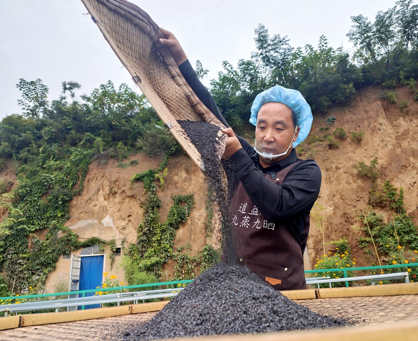 于書鋒晾曬黑芝麻。