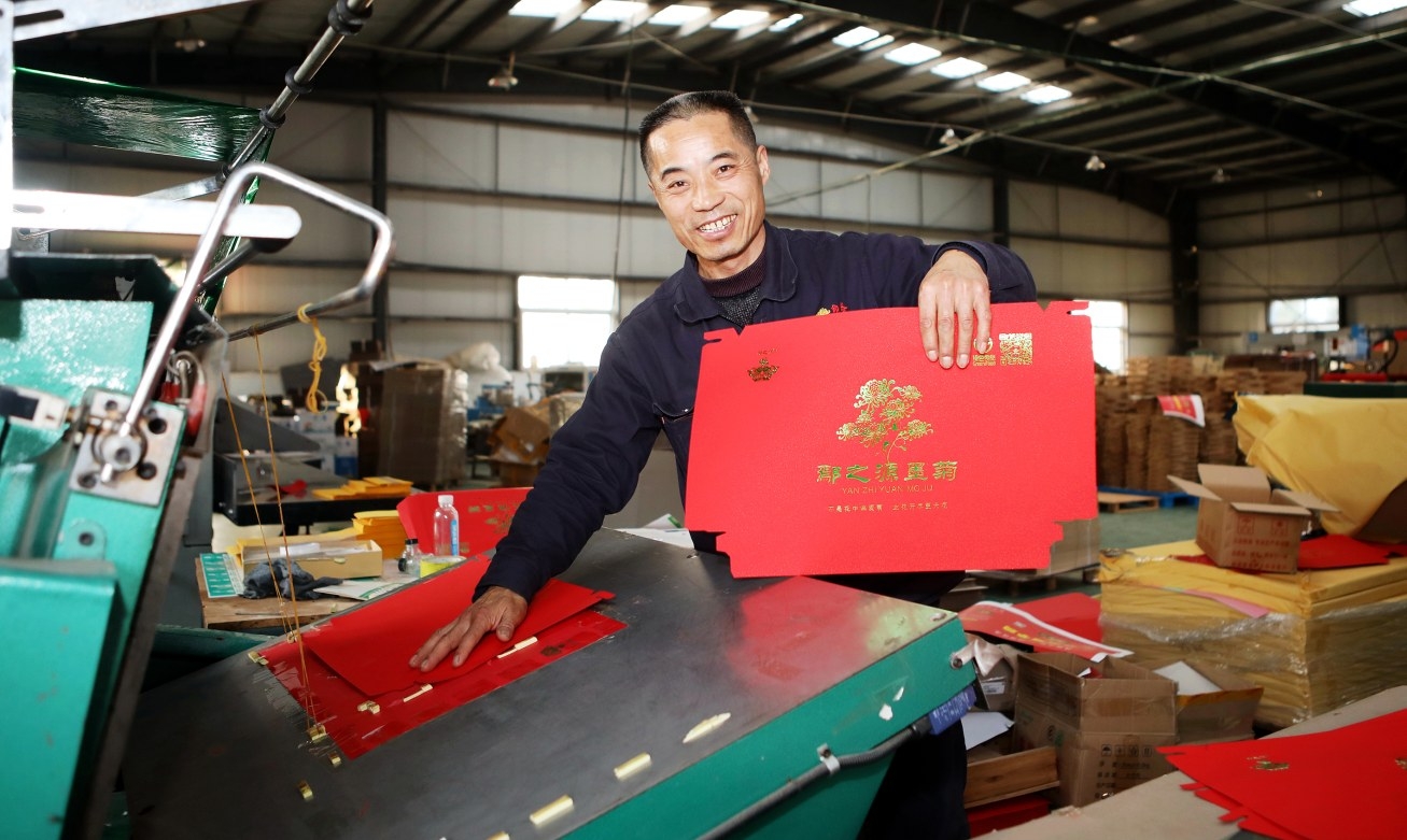 11月26日,鄢陵縣張橋鎮(zhèn)裴莊村彩箱廠的工人正在給彩箱燙金。近年來(lái),裴莊村充分發(fā)揮黨建引領(lǐng)優(yōu)勢(shì),將集體經(jīng)濟(jì)合作社平臺(tái)和群眾致富愿景充分融合,先后引進(jìn)冬棗種植、菊花種植及深加工、水產(chǎn)品養(yǎng)殖、民宿旅游、紙箱加工生產(chǎn)等項(xiàng)目,不斷豐富壯大集體經(jīng)濟(jì)產(chǎn)業(yè)框架,讓村民共享集體經(jīng)濟(jì)帶來(lái)的福利。