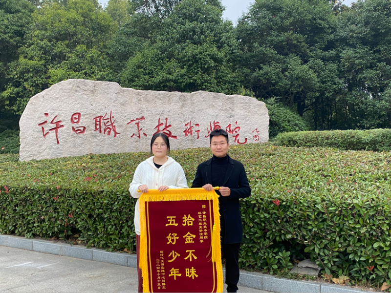 為了表示感謝,10月21日一大早,失主劉先生專程拜訪許昌職業(yè)技術(shù)學(xué)院,高度評(píng)價(jià)了學(xué)校的人才培養(yǎng)質(zhì)量和德育教育成果,對(duì)學(xué)校培養(yǎng)出如此高素質(zhì)的學(xué)生表示稱贊,并向拾金不昧的史夢(mèng)汝同學(xué)贈(zèng)送錦旗,感謝她用實(shí)際行動(dòng)弘揚(yáng)了真善美,傳播了社會(huì)正能量。