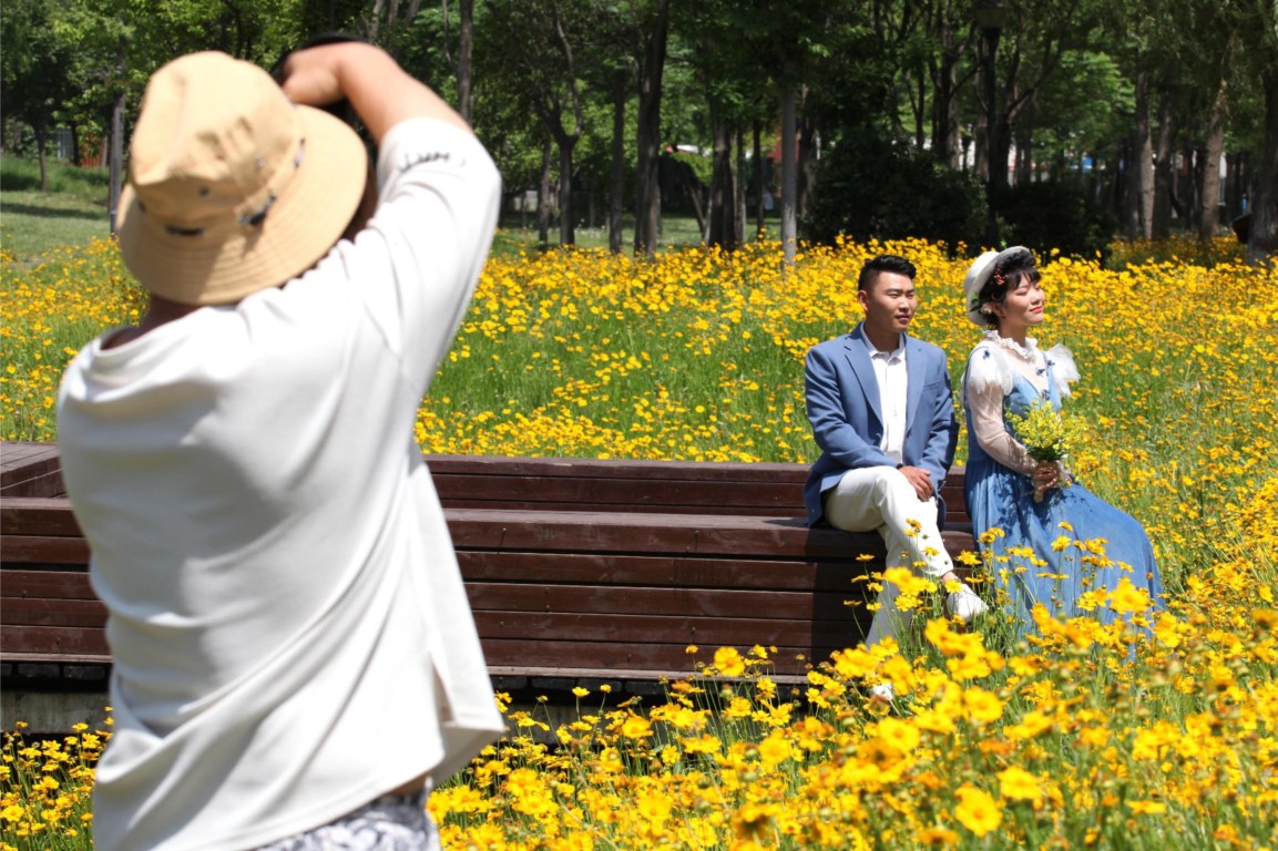 市民在飲馬河畔拍婚紗照。本報(bào)記者 牛書培 供圖