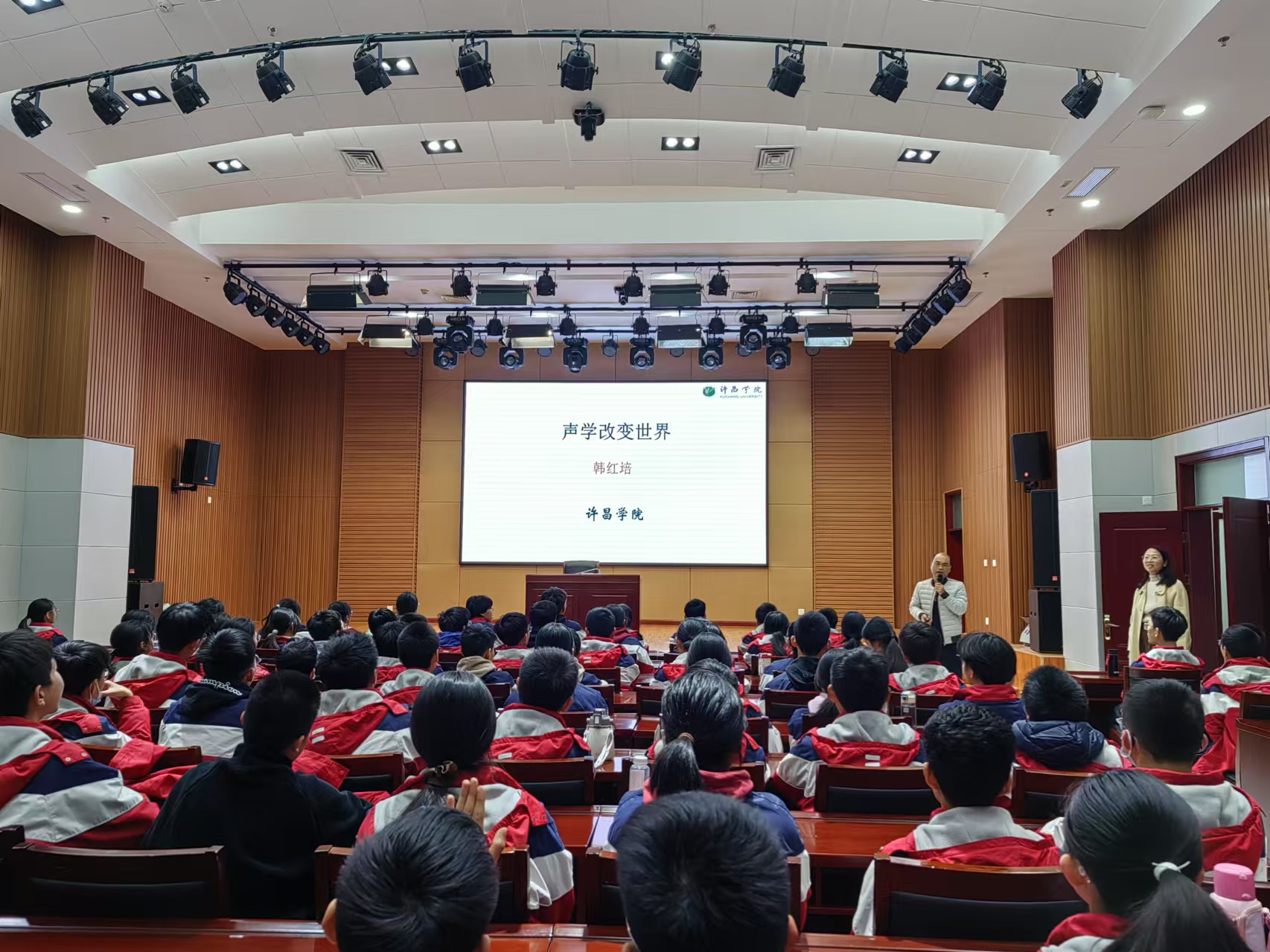 活動中,許昌學院物理學院教授、博士服務團成員韓紅培在許昌市科技館報告廳,以《聲學改變世界》為題,為孩子們帶來一場生動的聲學講座。韓教授從認識聲學、走進聲學、前沿聲學等方面步步深入,帶領學生走進聲學世界。課堂生動鮮活,把高屋建瓴的理論融入實際生活,得到了同學們的熱烈呼應。隨后,兩位許昌市科技館工作人員為同學們展示了《與光嬉戲》實驗課。在他們的默契配合下,一個個神奇又新穎的光學實驗依次呈現(xiàn)。在參觀環(huán)節(jié),“傳聲筒”“龍卷風”“顛倒屋”“天空艙”等一件件奧秘的展品,激發(fā)了同學們探索科學世界的濃厚興趣。