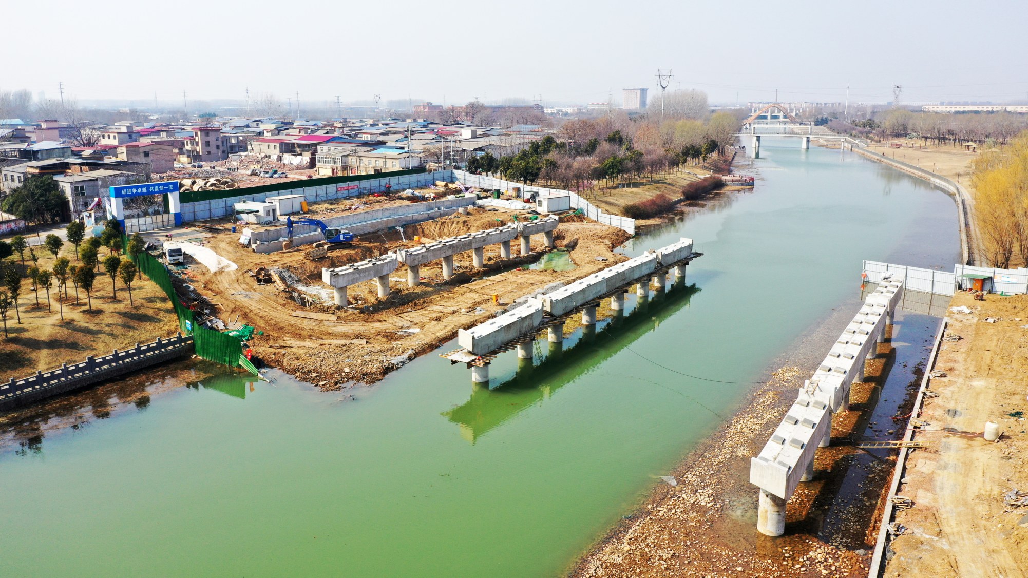 市區(qū)陳莊街(清潩河至和平路段)項目為我市中心城區(qū)城市更新重點項目,也是市委、市政府和魏都區(qū)委、區(qū)政府確定的2024年重點建設項目之一。按照工程總體進度要求,目前,陳莊街清潩河橋已進入實質性施工階段。圖為2月26日,陳莊街清潩河橋施工現場(無人機照片)?!”緢笥浾摺∨唷z