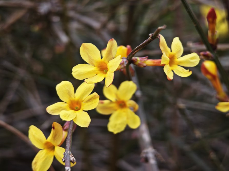 連翹和迎春都是在初春時(shí)節(jié)開放的小黃花,在市區(qū)的河湖水系邊很常見。因?yàn)椤巴饷病毕嗨?,很多人分不清它們,以至于在水系邊一看到黃色的小花就認(rèn)為是迎春。其實(shí),最簡單的分辨方法就是看花瓣。迎春的花瓣為5個(gè)至6個(gè),花偏圓;連翹的花瓣只有4個(gè),花偏長。