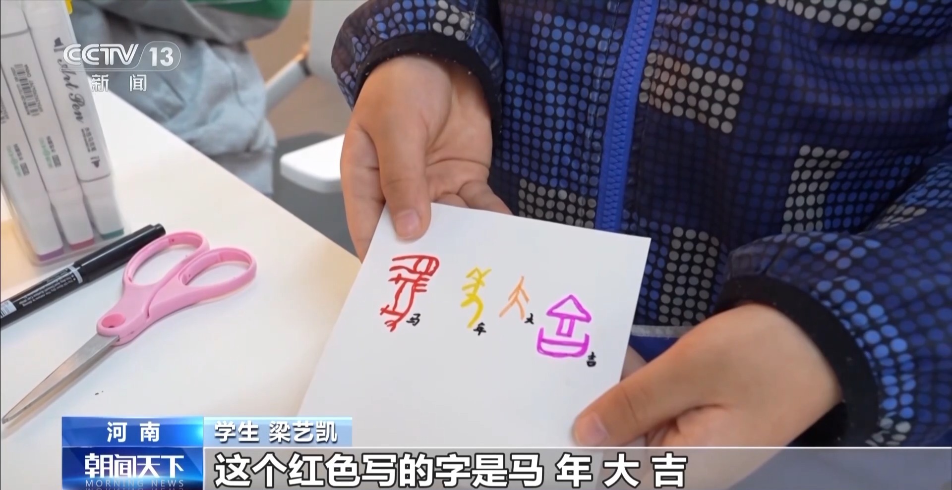 游客 梁藝凱:這幾個(gè)字是馬、年、 大、吉,明年是馬年,祝賀明年能順順利利。