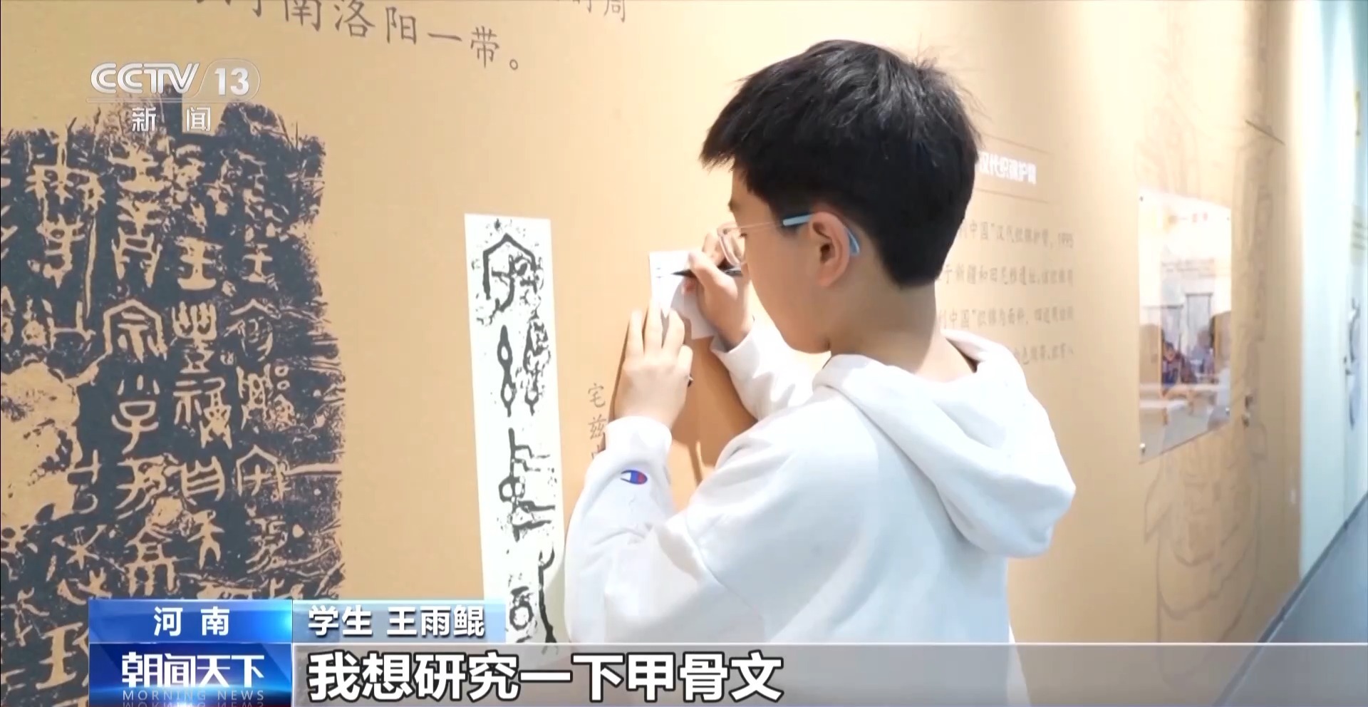 游客 王雨鯤:以后如果我學(xué)習(xí)好,我想研究一下甲骨文,看能不能把一些現(xiàn)在還沒(méi)有發(fā)掘出來(lái)的甲骨文給破譯出來(lái)。